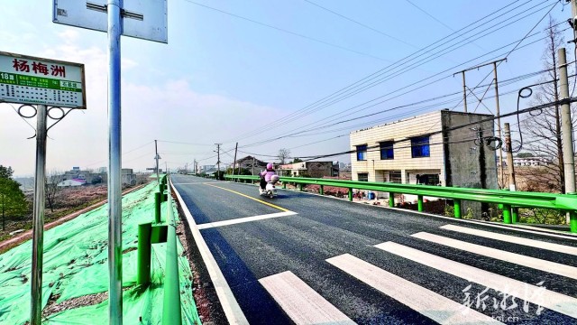 提质改造后的杨梅洲“入岛公路”。 (谭涛 摄)