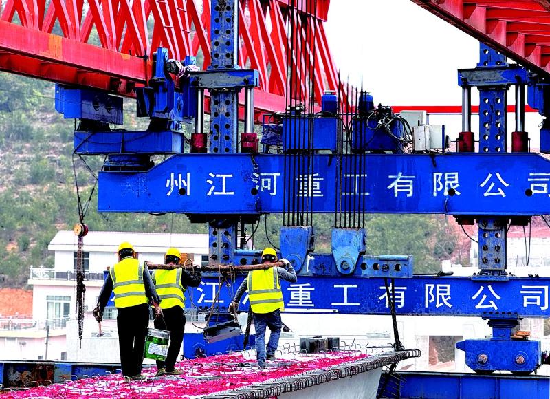 距大桥200米开外就是浏江高速三标段的预制箱梁场。胡长富介绍,架设箱梁是一个系统工程,项目秉持“保安全、抓质量、促进度”的原则,组织施工人员严格按照制作规程,分解箱梁预制工艺,实现箱梁预制的精细管控和效率提升。目前,预制箱梁场平均每4天可预制生产一片箱梁。