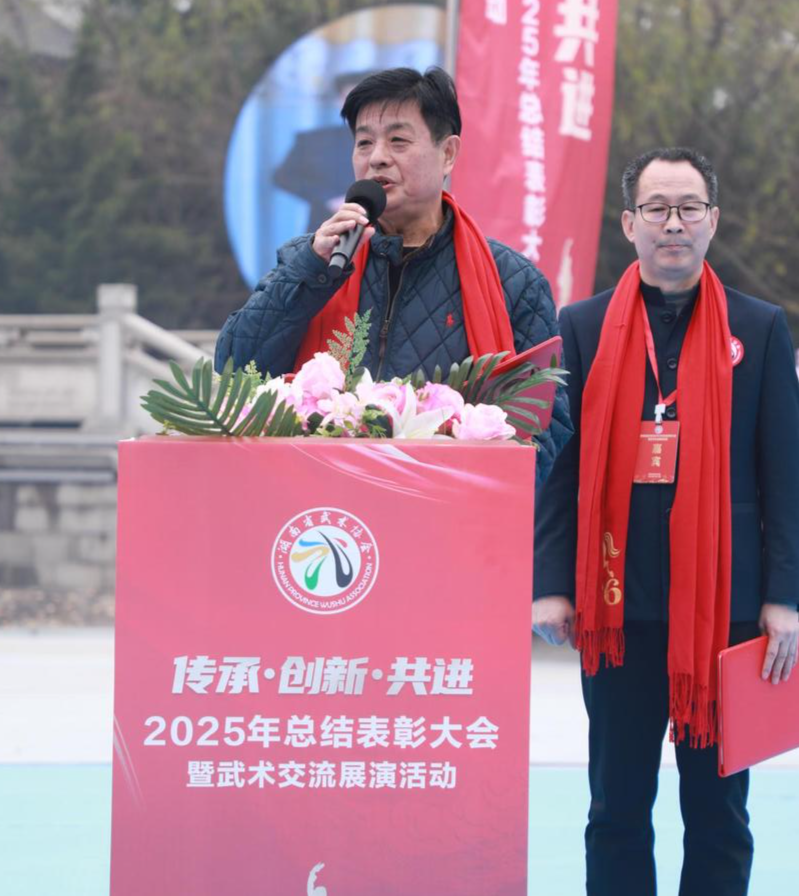 杜利民强调,新的一年,省武协将坚持“大武术”发展理念,深化“抓两头、促中间”工作思路,重点推进少年儿童健身武术、中老年人养生武术与青少年竞技武术协同发展;持续打造特色品牌赛事,擦亮湖南武术“金字名片”;加强党建引领,推动省市县三级武术协会联动,促进武术文化与红色基因深度融合;探索武术协会社会化与产业市场化新路径,为健康湖南建设贡献武术力量。