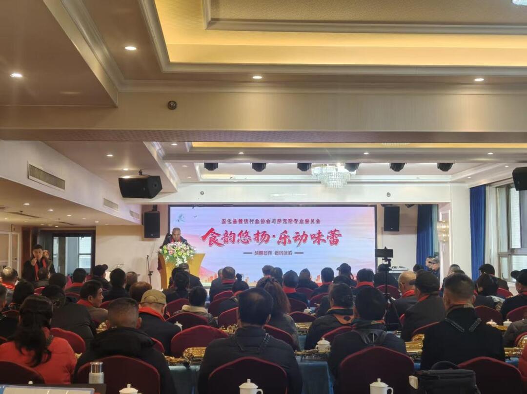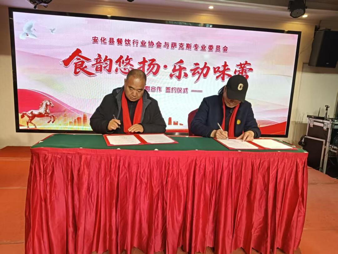 新湖南客户端1月19日讯(通讯员 夏玉军)1月18日,安化县餐饮行业协会与萨克斯专业委员会举行战略合作签约仪式。县委宣传部、县商务局、县文联、县梅山研究会相关负责人莅临现场指导,双方代表、餐饮企业代表及萨克斯艺术从业者齐聚一堂,共同见证安化餐饮与艺术跨界融合的重要时刻。