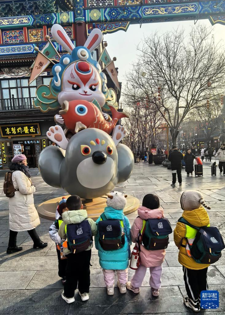 孩子们在前门商业街上游览(1月15日摄)。