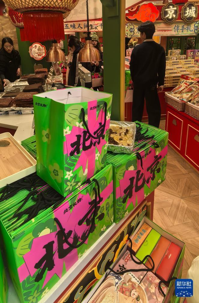 这是前门商业街上商家摆出的年货(1月15日摄)。