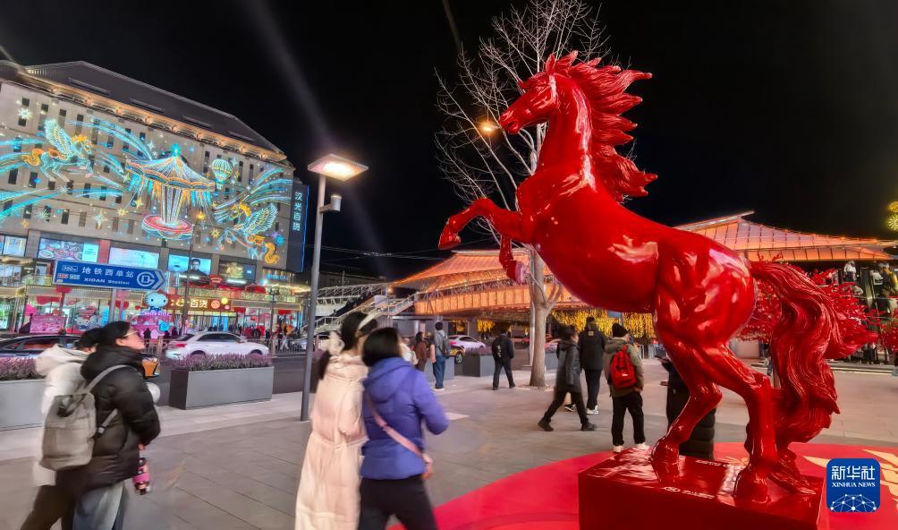 节日氛围浓厚的西单商业街(1月16日摄)。