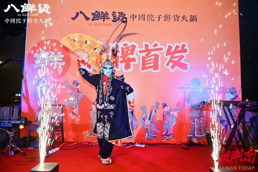 品牌创始人胡康乐在开业仪式上介绍,八鲜烫的灵感源于传统“八仙”传说与川渝火锅文化的融合,并延续了其团队此前打造“王捌院子”等院子餐厅的空间美学理念。但与侧重农家菜系的院子餐厅不同,八鲜烫更强调“鲜货现制”与“文化沉浸”——锅底由非遗技艺传承人现场炒制,食材跨越山海直供,同时融入川剧变脸、民乐表演等互动元素。