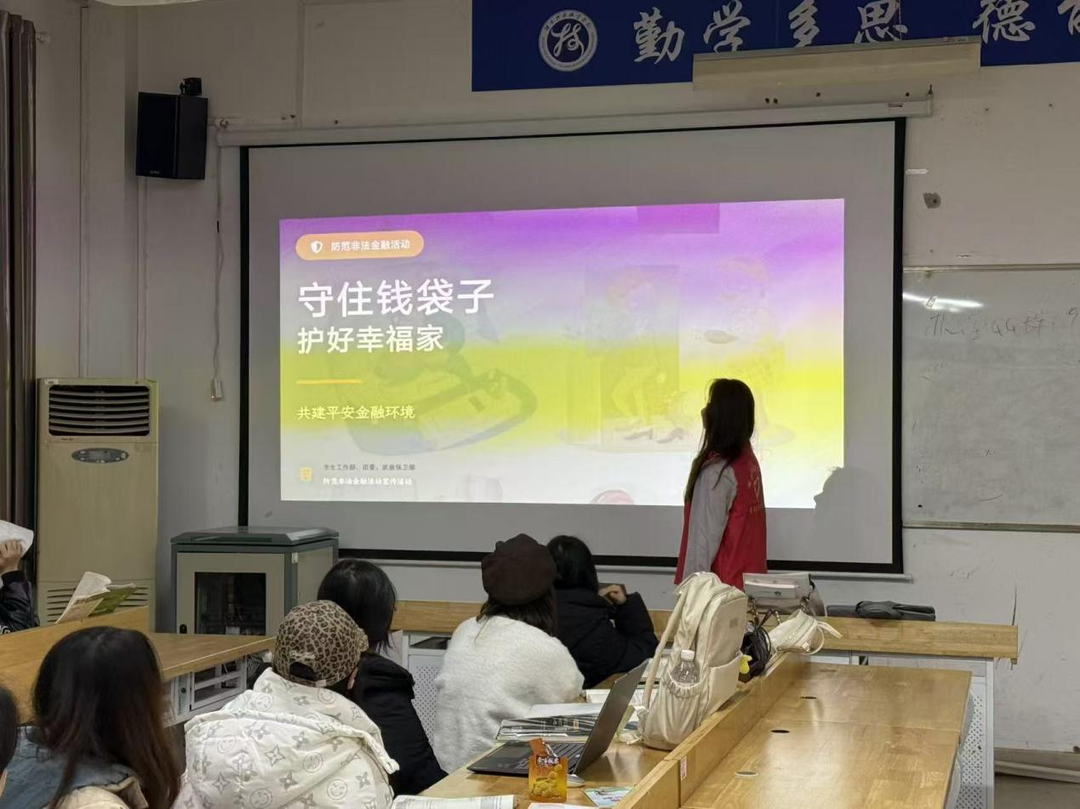 宣讲志愿团深入各大二班级,以鲜活的案例为同学们敲响金融安全的警钟:有学生因追求新款电子产品,陷入“零首付、低利息”的非法校园贷陷阱,短短三个月,9000元欠款因高额服务费、逾期费滚增至2万元,还遭遇频繁催收,严重影响学业;有学生轻信“日入数百”的刷单广告,初期获得小额返利后便投入大额资金,最终被平台拉黑失联。