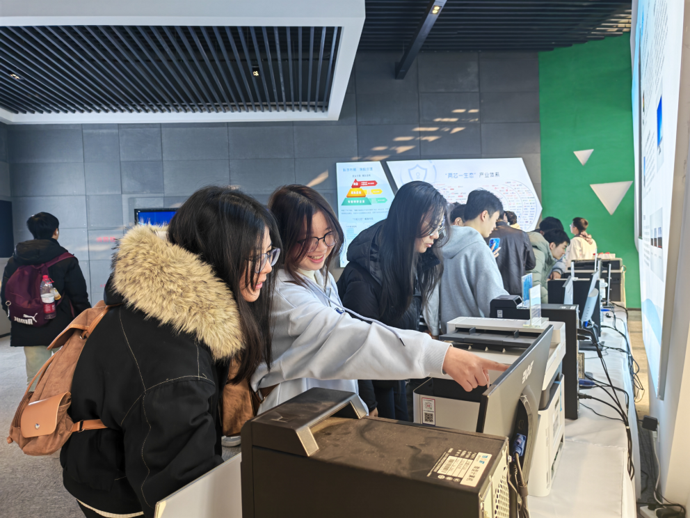 中心负责人给师生深入介绍了安全可靠计算机产业链的发展现状与创新成果,进一步增强了同学们对信创领域国家战略的深刻理解。