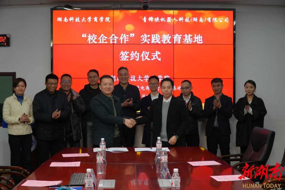 新湖南客户端1月19日讯(记者 李典蔓)1月16日,湖南科技大学商学院与青锋侠机器人科技(湖南)有限公司“校企合作实践教育基地”签约仪式在商学院举行。双方共同签署了战略合作协议,标志着校企双方在智能机器人产教融合、科教融汇、协同育人方面迈出了坚实一步。