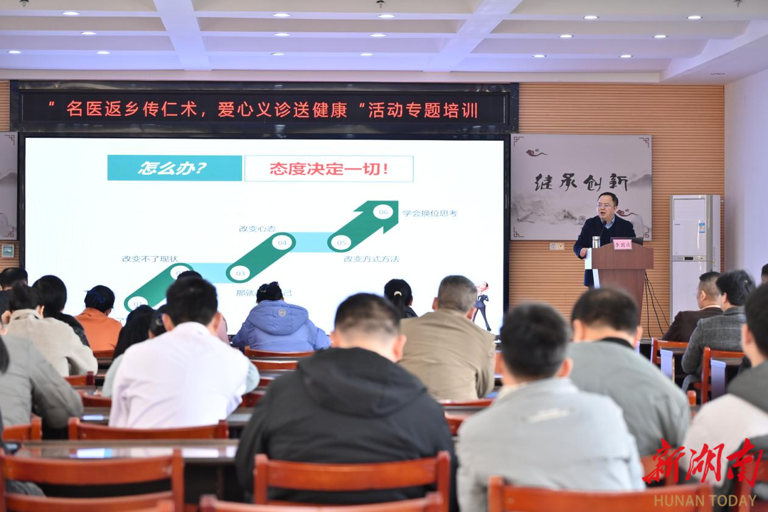 此次行动还包括面向基层骨干的专项培训。结束现场义诊工作后,李国庆教授随即前往祁东县中医医院,结合自己30余年从医经验,分享了如何构建和谐医患关系的实践心得,获得参与培训人员的阵阵掌声。心血管内科彭建业博士、全科医学科主任李妮分别就最新版高血压、糖尿病防治指南进行了深度解读,为基层诊疗提供了前沿、实用的学术支持。