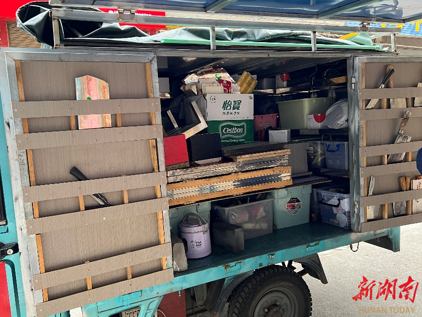廖希进装满“装备”的三轮车。