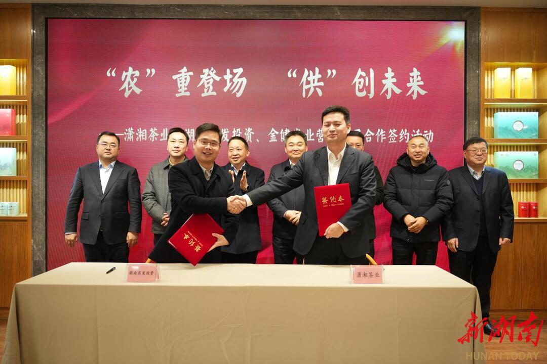湖南日报·新湖南客户端1月19日讯(通讯员 王婷婷)1月19日,潇湘茶业与湖南农发投资、金健米业合作签约仪式在长沙举行。这次合作协议的签署,不仅标志着湖南供销系统与国资系统合作开启崭新篇章,也预示着未来双方将在市场渠道、供应链整合、品牌共建等方面深化协同、聚力前行,共同为湖南茶产业高质量发展与乡村振兴事业注入强劲动能。