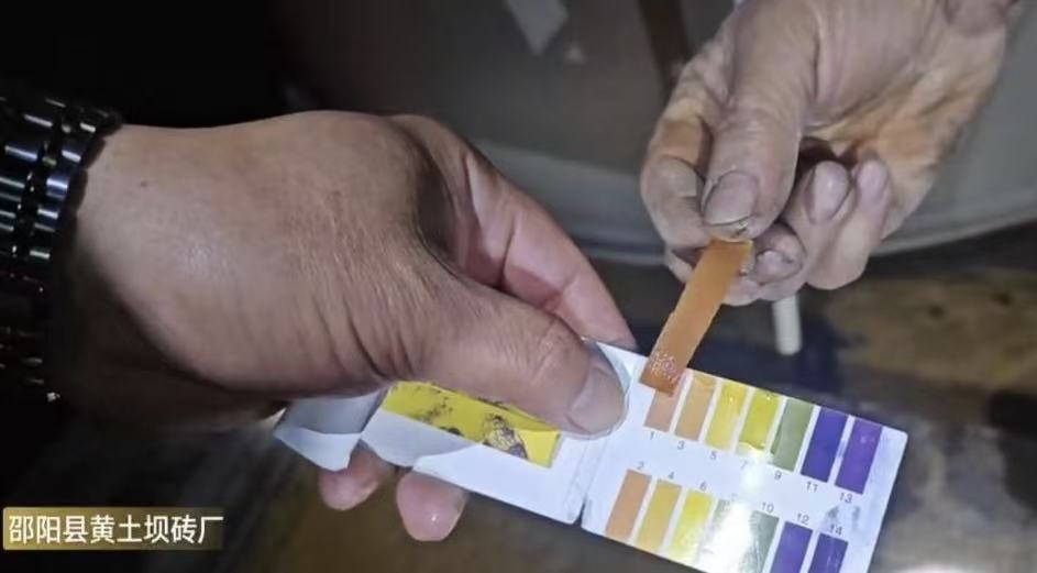 该砖厂脱硫设施运行不正常,临时加碱应付检查。检查人员进入厂区时脱硫水池进水pH试纸显示为强碱性,十几分钟后复测,脱硫水池进水及出水均为强酸性;自动加药控制柜pH计无数据显示,成为摆设。