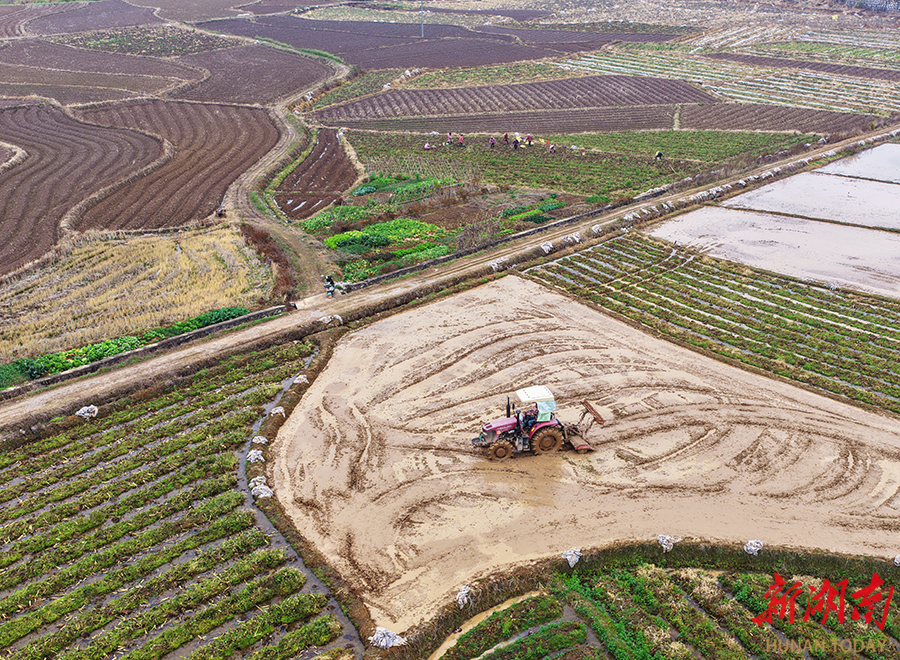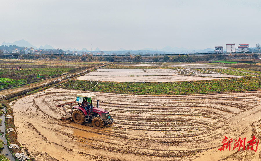 1月19日,蓝山县土市镇洞心村,村民驾驶农机在翻耕农田。深冬时节,当地农民变“冬闲”为“冬忙”,积极开展农田翻耕、农作物管护,为开春农业生产做准备。 黄春涛 摄(湖南图片库)