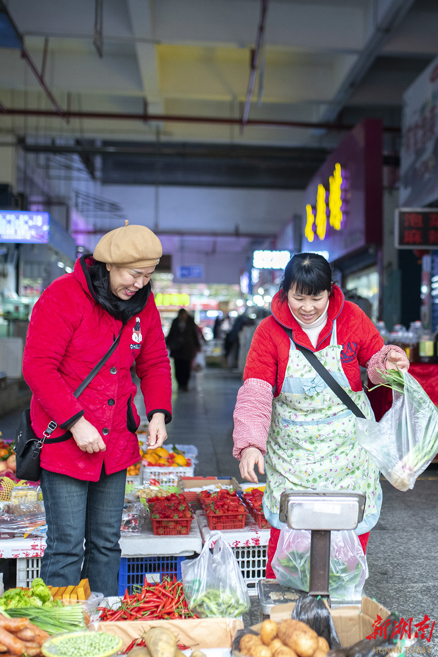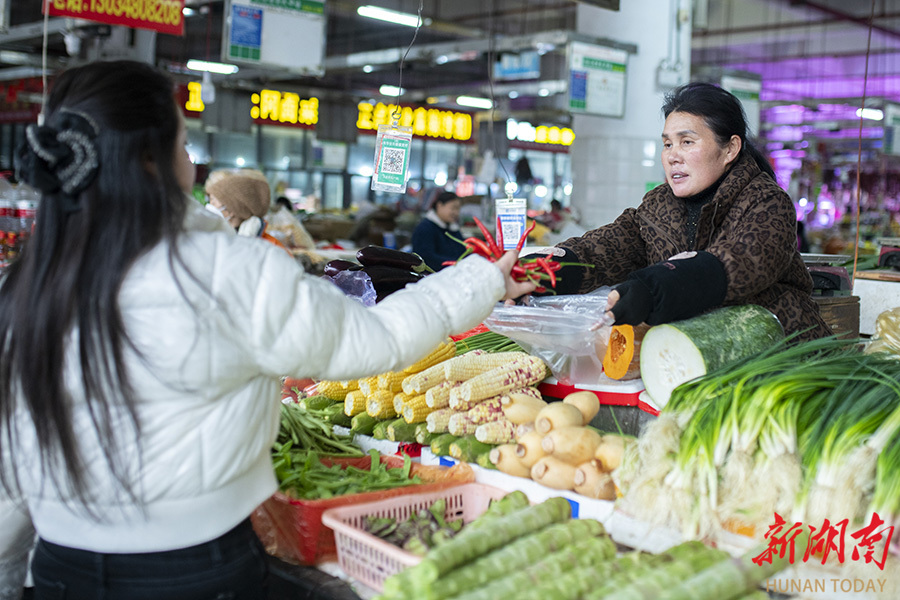 1月19日,娄底市娄星区金谷农贸市场,市民在选购蔬菜。为应对寒潮天气,娄底市各级部门建立高效协同、职责明确的应急保障体系,引导公众、企业、社区共同参与,形成合力,最大程度地减轻寒潮带来的不利影响,确保群众生活必需品供应充足。 吴永华 摄(湖南图片库)