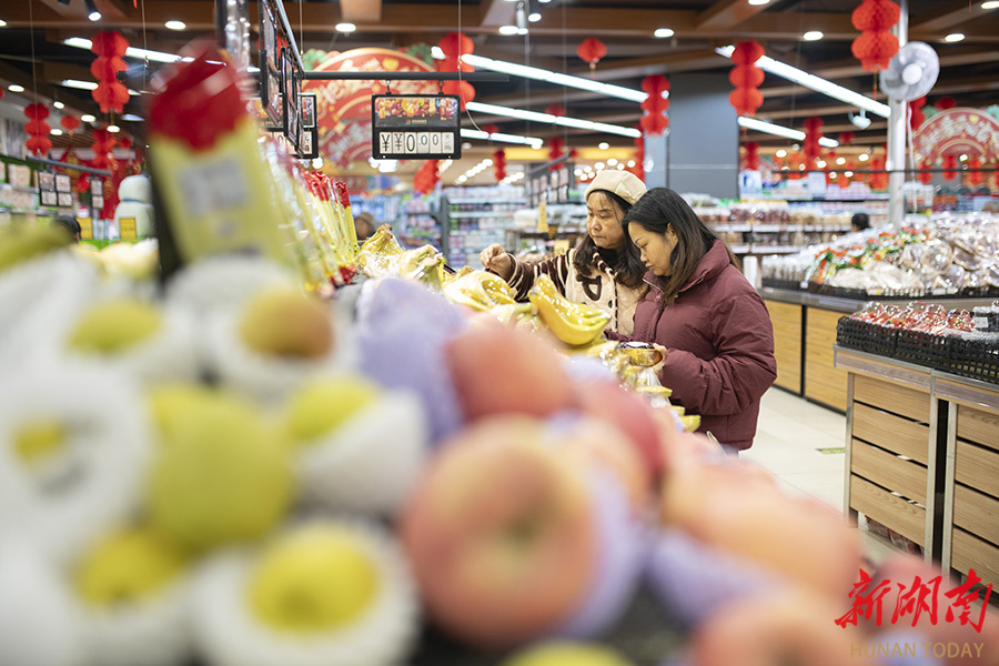 1月19日,娄底市娄星区百花超市,市民在选购水果。为应对寒潮天气,娄底市各级部门建立高效协同、职责明确的应急保障体系,引导公众、企业、社区共同参与,形成合力,最大程度地减轻寒潮带来的不利影响,确保群众生活必需品供应充足。 吴永华 摄(湖南图片库)