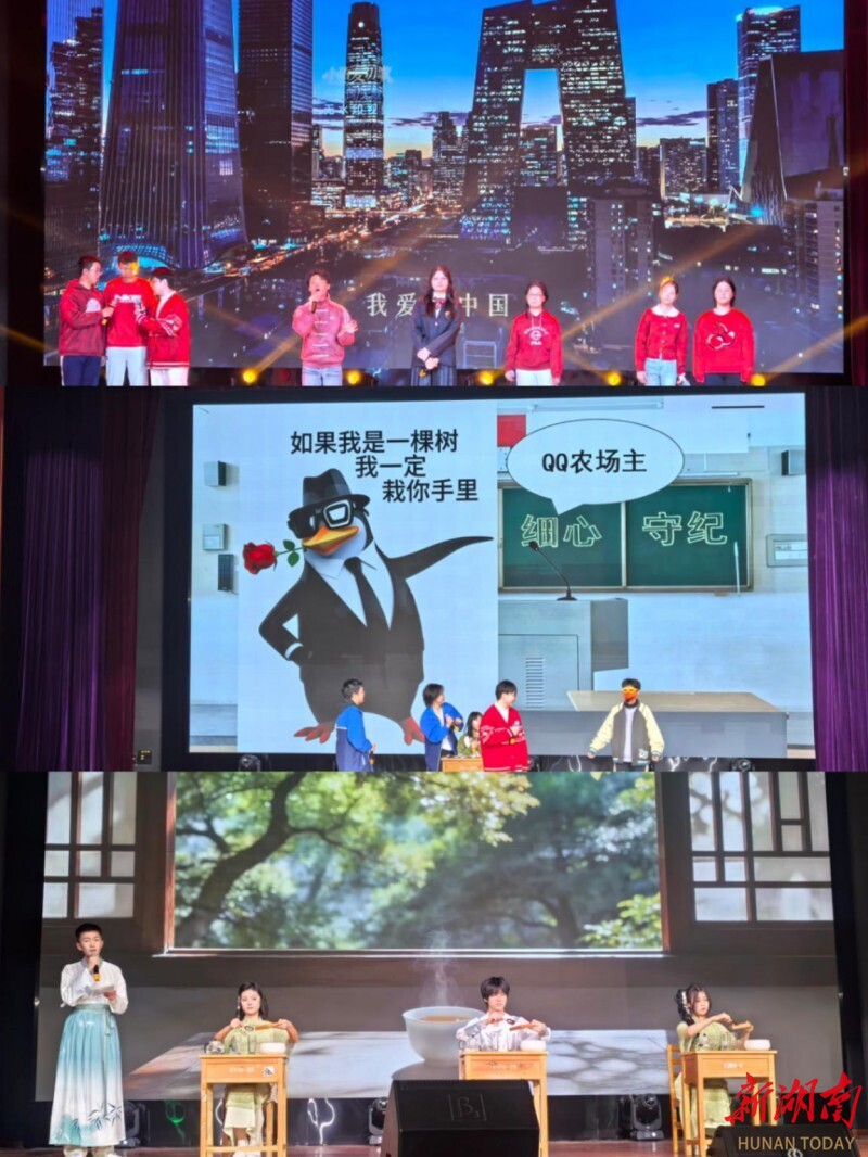 艺术与情感共鸣:歌曲串烧《心墙》《漂洋过海来看你》温暖治愈,配音表演《冰雪奇缘》创意十足,情景剧《当考试还剩十五分钟》幽默反映校园。压轴升华:全员合唱《我爱你中国》将个人情感与家国情怀深度融合,呼应明德中学“心忧天下、至诚报国”的育人理想。