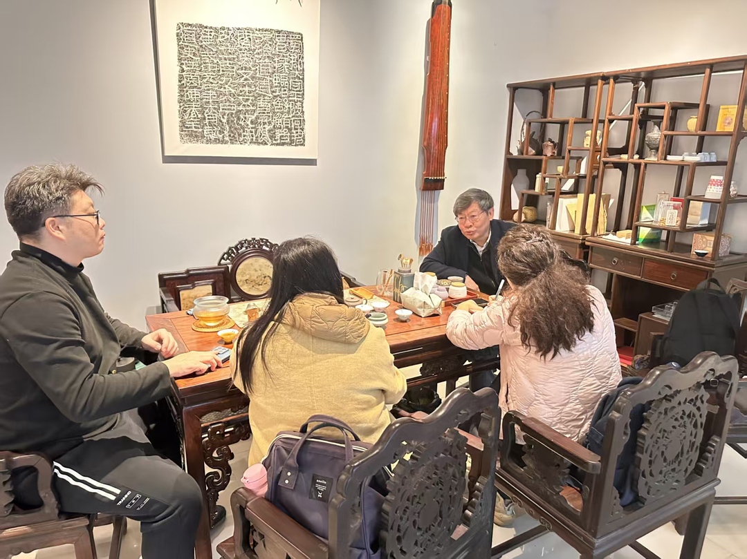 团队先后走访了长沙简牍博物馆、铜官窑博物馆及铜官窑遗址。简牍博物馆珍藏了大量汉代至三国时期的简牍,这些简牍是了解古代湖湘地区社会生活的真实史料;长沙铜官窑博物馆是一座以唐代陶瓷文化与海上丝绸之路为主题的专题博物馆,博物馆系统展示了长沙窑的兴衰历史、釉下多彩技艺以及瓷器上独特的诗画装饰等,是了解中国古代陶瓷外销和海上丝绸之路的重要窗口;铜官窑遗址位于湖南省长沙市望城区湘江东岸的铜官街道至石渚湖一带,是唐代南方规模巨大、极负盛名的青瓷窑场,也是世界釉下多彩陶瓷的发源地。其完整保存了唐代制瓷业的真实场景,包括龙窑窑炉、作坊区、生活区等遗迹,生动展现了从制泥、拉坯到烧造的完整工艺流程。在著名的“黑石号”沉船出水的数万件中国瓷器中,长沙铜官窑瓷器占绝大多数,这实证了它作为唐代海上丝绸之路重要贸易商品与文化载体的辉煌历史,见证了中外商贸与文化交流的繁盛。