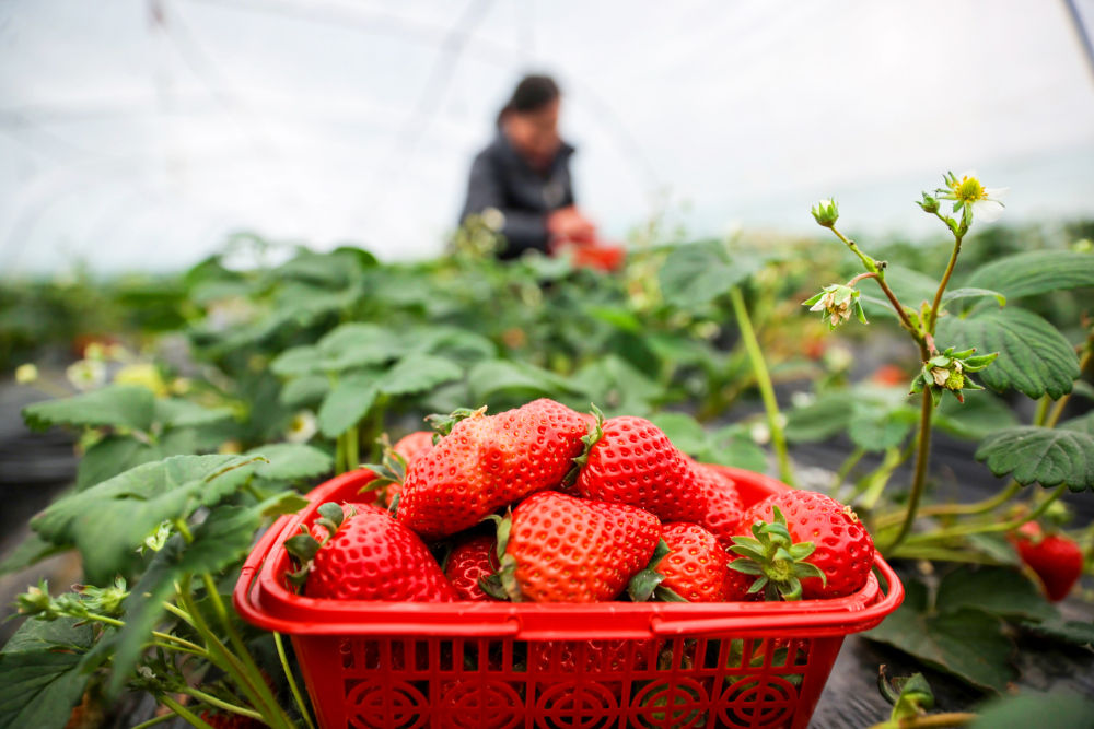 ↑2026年1月20日,浙江省湖州市吴兴区埭溪镇一处草莓园,农民在采摘草莓。CICPHOTO/何伟卫 摄