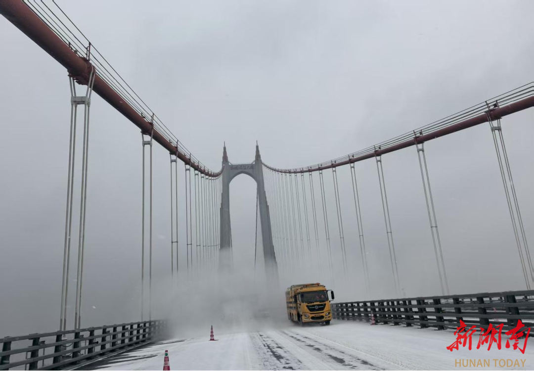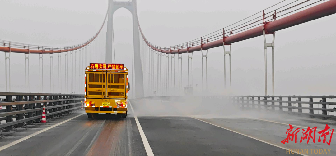 1月20日,在G56杭瑞高速洞庭湖特大桥(岳阳)等关键节点,国储娄底中心严格对标省厅调度指令,分两批次调拨的5台专业除雪装备已精准投用。其中,热吹雪车正在桥面作业,强劲热流瞬间吹散薄冰与积雪,保障了这座跨湖大桥的通行安全。党员先锋突击队全程统筹装备调度、技术支撑与物资保障,为一线作业筑牢坚实后盾,确保冰雪险情“分钟级”处置,不折不扣落实“防早防小、精准防控”要求。