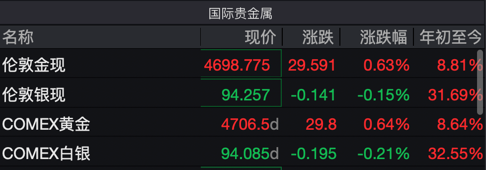自2026年1月1日起,现货黄金一路冲高,迅速冲破4400美元、4500美元、4600美元、4700美元,开年以来已累计上涨超过8%。截至发稿时,涨幅略有收窄。