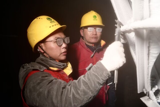117号塔恰处风口要地,风更烈、湿更重,寒风裹挟着水汽,打在身上瞬间化作冰碴。天寒地冻间,2小时要到塔下监测一次冰情。2时56分,这是他们此次驻哨第6次来到117号塔下,大家的睫毛挂满冰晶,牙关不住打颤,手脚麻木僵硬。“温度降得快,抓紧测!”李国恒喊了一声,哈出的白气瞬间消散在风里。周国林和谌云飞拿出监测设备,冻得不听使唤的手指反复按压监测仪启动键。