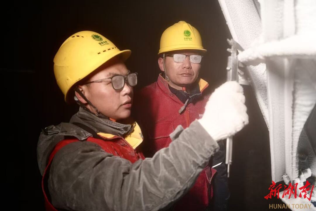 为实时监测冰情,国网衡阳供电公司输电检修公司负责人李国恒与周国林、谌云飞两名员工提前一天进驻哨所,在严寒中彻夜值守。