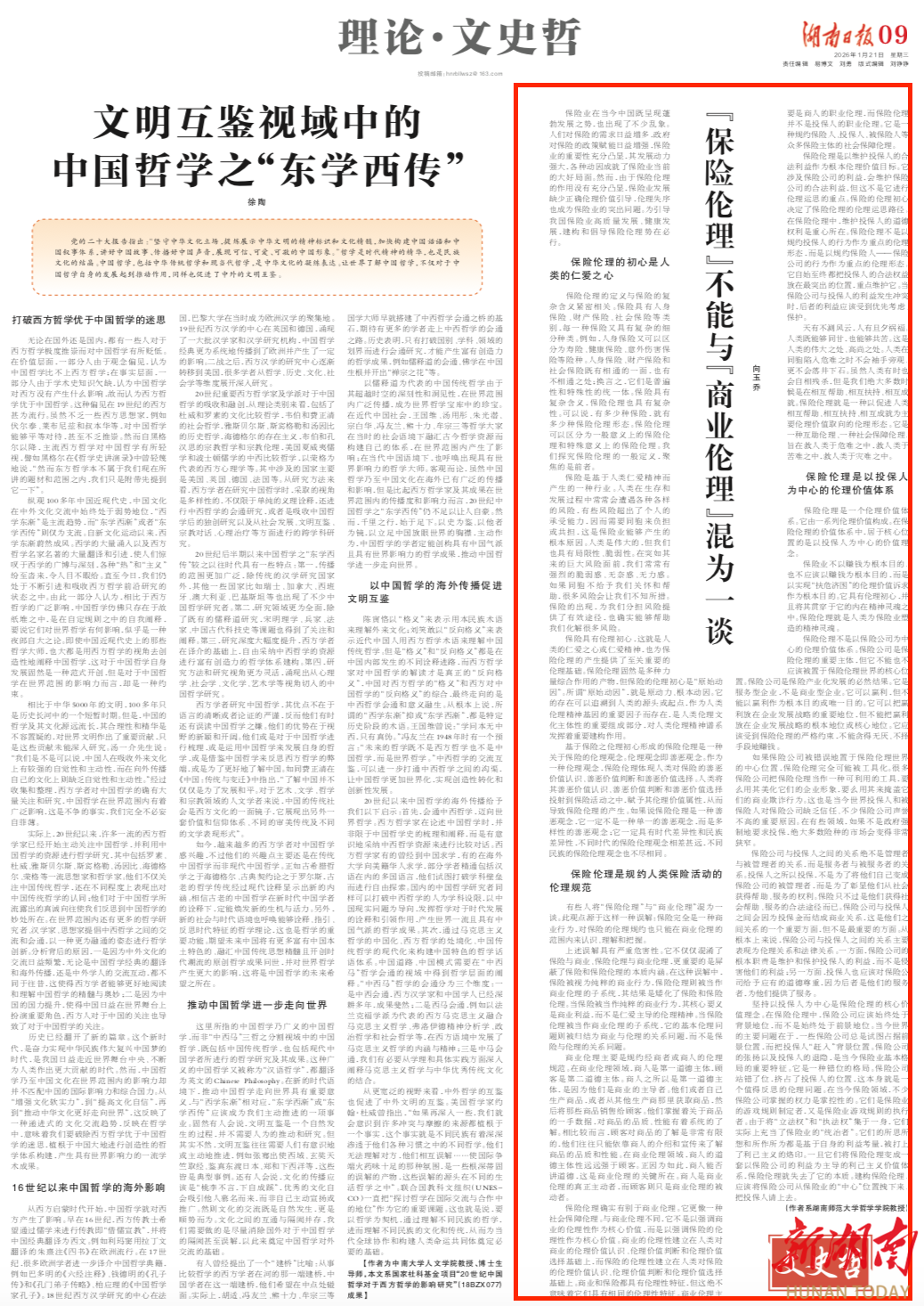 上述误解具有严重危害性。它不仅仅混淆了保险与商业、保险伦理与商业伦理,更重要的是屏蔽了保险和保险伦理的本质内涵。在这种误解中,保险被视为纯粹的商业行为,保险伦理则被当作商业伦理的子系统,其结果是矮化了保险和保险伦理。当保险被当作纯粹的商业行为,其核心要义是商业利益,而不是仁爱主导的伦理精神。当保险伦理被当作商业伦理的子系统,它的基本伦理问题则被归结为商业与伦理的关系问题,而不是保险与伦理的关系问题。