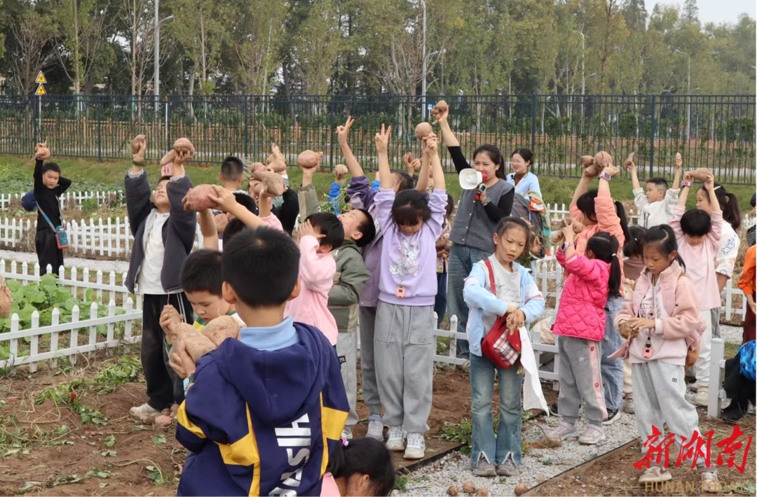 (鸟语林的田埂上,学生们挥锹挖红薯,解锁农耕乐趣)