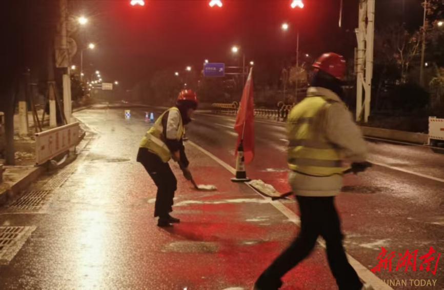 湖南日报·新湖南客户端1月21日讯(记者 王茜 通讯员 黄雅 曾国军)寒潮来袭,风雪骤临。1月20日至21日清晨,长沙迎来今冬首场降雪。北风呼啸,深夜凌晨格外寂静,人们正是睡得格外香甜的时候。但在湘府路高架桥、欢乐城隧道、麓景路等城市重要干道上,有一群人的身影仍在凛冽风雪中坚守奔忙。