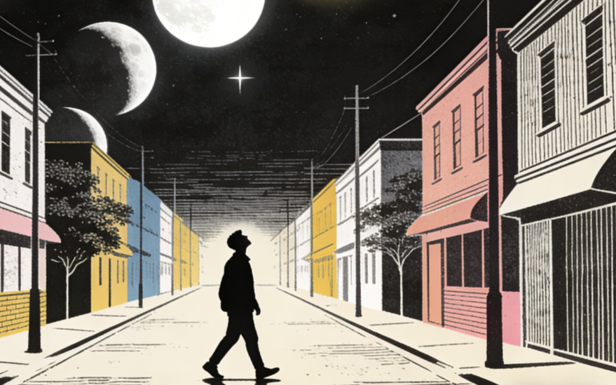 及至成人成家之后,世事缠绕,晚上出去得少,很少与月亮交流了,有点淡忘了它曾是我童年不离不弃的依靠——它不仅给我光明,也给了我许多抬头望天、打开世界的勇气。