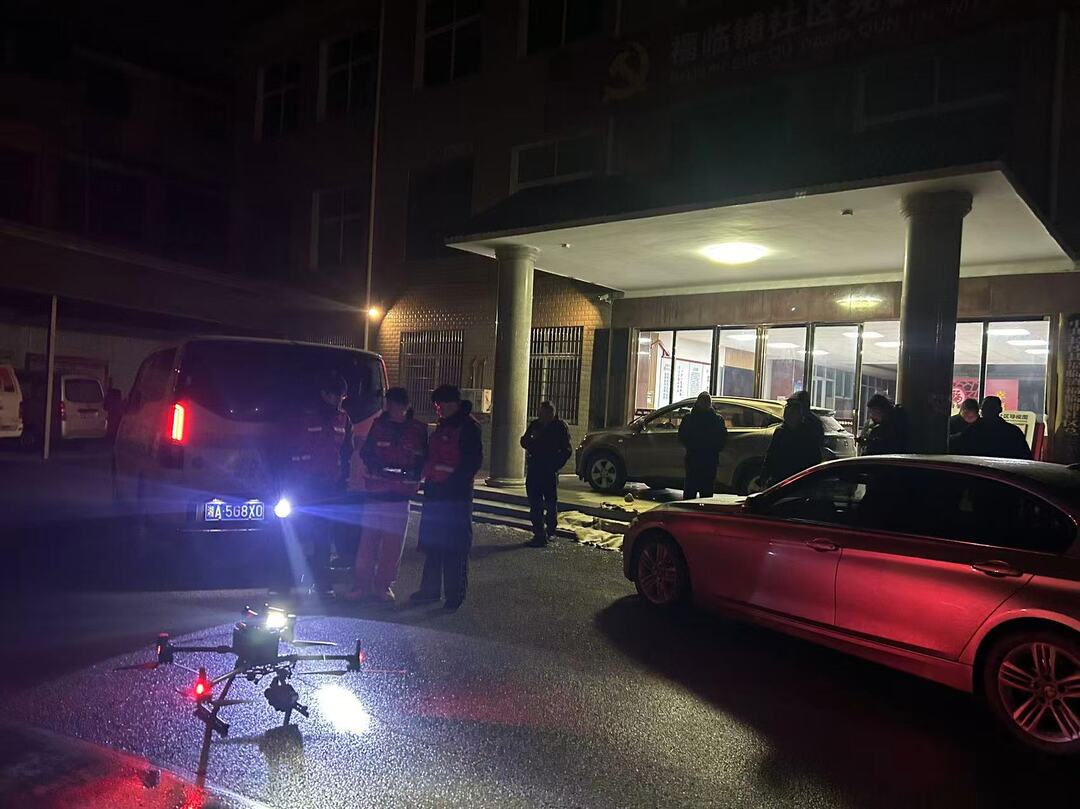 抵达现场后,救援队员立即与当地村委会对接,了解失踪老人的基本情况和可能活动范围,并随即展开针对性搜寻。地面救援队伍对当地山林、沟渠、坡道等结冰易滑倒区域进行重点寻找,无人机在空中进行地毯式排查。在夜间持续的风雪低温环境中,救援人员克服地面湿滑、严寒刺骨等困难,不间断搜寻。