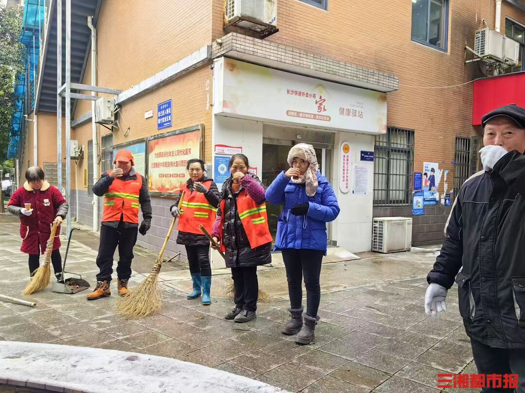 三湘都市报·新湖南客户端1月21日讯(文/视频 全媒体记者 高煜棋 江晓军 通讯员 王代乐 陈瑜坤)1月21日13时,寒风中夹杂着冰雪,长沙市望月湖街道湖东社区街巷里,环卫工人、外卖小哥仍正冒着风雪忙碌着,清扫积雪、穿梭配送。社区活动室的方向飘来阵阵暖香,“长沙好人”高燕和社区工作人员王德强正忙着分装热姜汤,很快,一碗碗热腾腾的姜汤递到户外劳动者手中,让这个飘雪的冬日满是温情。