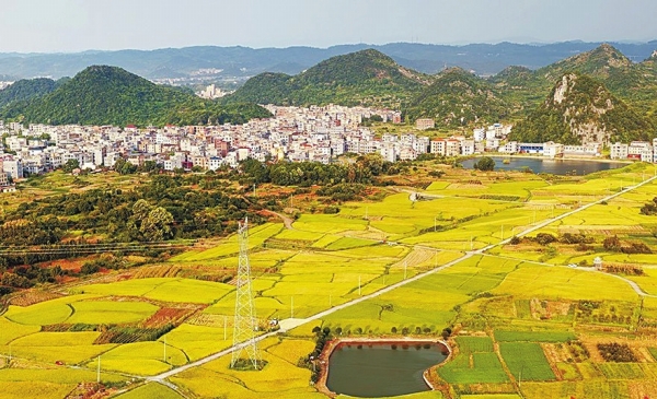 (嘉禾的金色稻田让仓廪变得盈实。通讯员 摄)