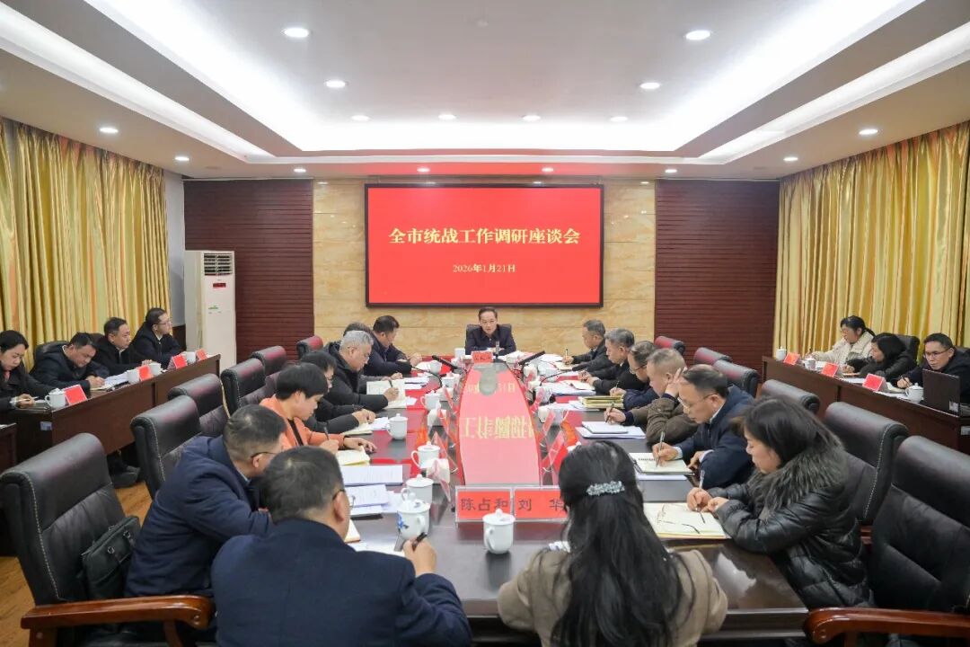 1月21日,市委书记吴巨培专题调研市委统战部、市工商联、市侨联工作,与统战系统干部交流2026年工作思路与打算。