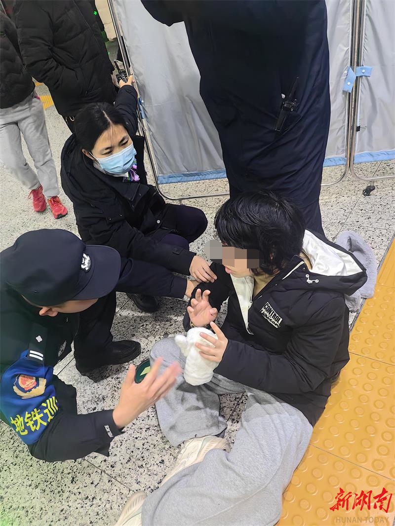 “警察同志,前面那节车厢里有个女孩子突然晕倒在地上了,我就要下车了,你们赶快去看看吧!”1月21日下午2时43分,一位女性乘客在地铁3号线车厢里果断拦住了正在跟车巡逻的长沙市公交(轨道)公安局普瑞派出所所长姚立。