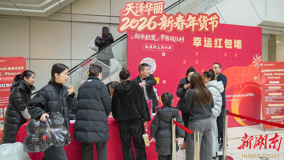 据天泽华丽服装市场负责人介绍,本次新春年货节紧扣新春消费需求,积极响应湖南省人民政府《关于推动2026年一季度经济实现平稳起步的若干举措》部署要求,既给市民送实惠,也帮商户冲业绩。同时,天泽华丽服装市场依托“吃、住、逛、购、播、打卡”沉浸式消费新场景的独特优势,让消费者在抢优惠、买新衣的同时,沉浸式感受浓浓的新春氛围。