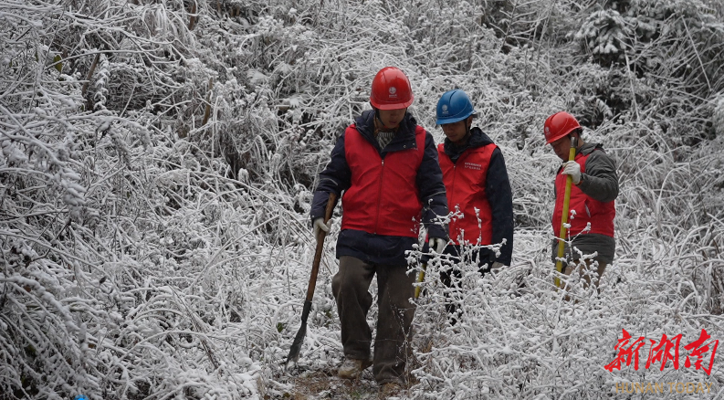 “现在没有线路停运,往年山区线路很脆弱,今年能顶住压力,得益于线路抗洪抗冰改造和精准运维。”面对恶劣天气,国网资兴市供电公司州门司供电所配电运检班班长邱乾博就带领3名队员,奔赴10千伏分顶线、分彭线、分州线展开专项巡护。这三条海拔超800米的线路是山区群众用电“生命线”,雨雪让山路湿滑难行,队员们深一脚浅一脚穿梭在山林间。倾斜的树竹被积雪压弯逼近导线,他们分工协作测量、砍伐,消除覆冰隐患。