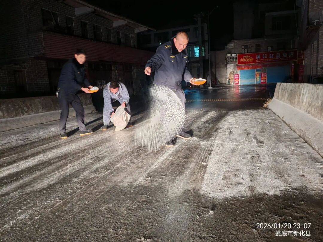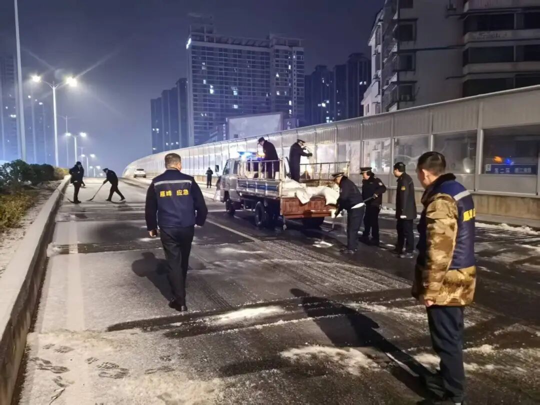 1月20日,渌口区城管局、交警大队等部门联合各镇,对辖区内易结冰路段和桥梁开展巡逻与隐患排查,并全天候开展撒盐除冰、道路清障工作。