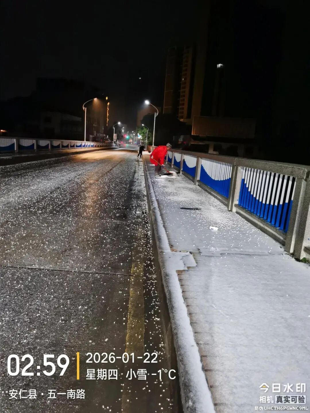 1月22日凌晨,安仁县组织人员对辖区内重点路段、桥梁等开展安全巡查、撒盐融冰、路障清理工作。