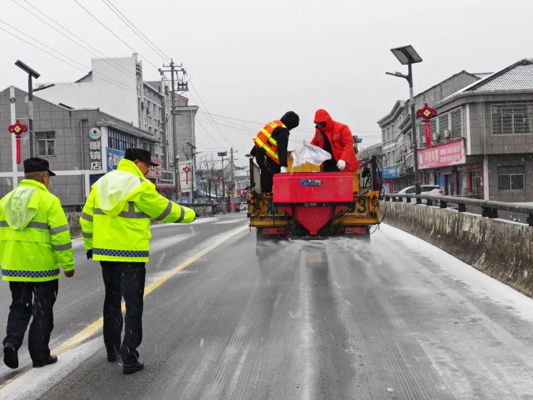 1月20日至21日,衡东县杨林镇组织镇、村干部和交警中队民辅警对辖区易结冰路段开展撒盐除冰作业。