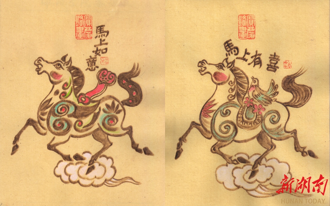 “马在中国传统文化中象征着吉祥、奋进和成功,我们希望通过这套作品,将马年的美好寓意传递给更多人。”唐文林说,创作过程中,他查阅了大量历代画马名作,反复推敲骏马的姿态、鬃毛的飘逸感,力求每匹马都神形兼备、气韵生动。特别是《马踏祥云》中的奔马,四蹄腾空、鬃毛飞扬,展现出昂扬向上的精神风貌;《马上有福》则将骏马与葫芦巧妙结合,寓意福气随马而至。