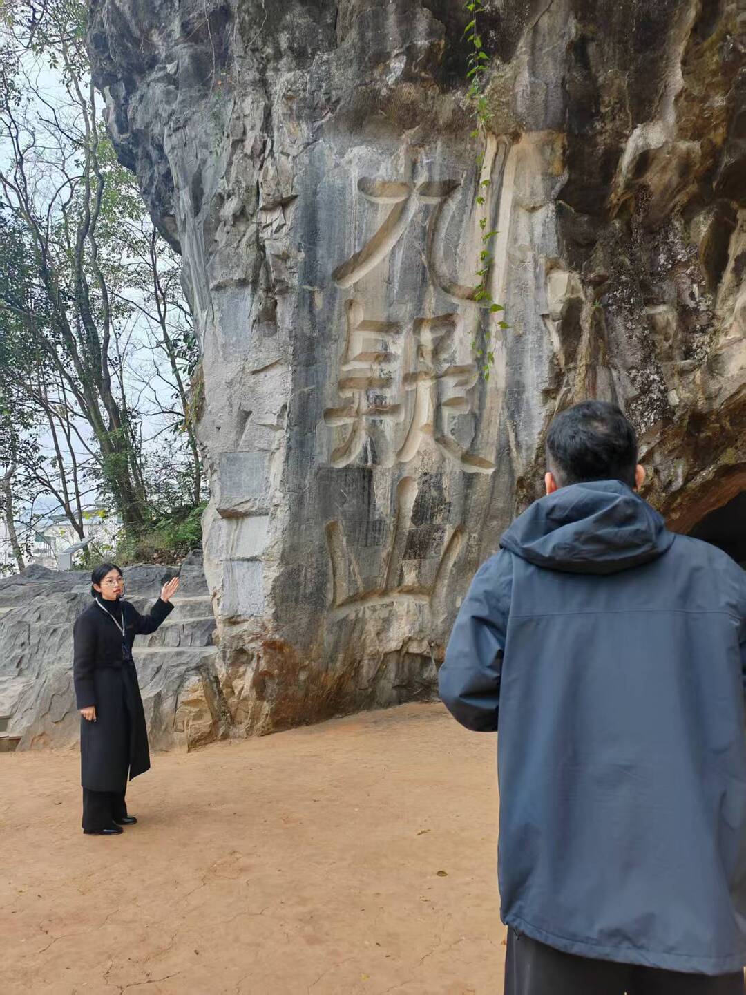 随后,团队转赴永州,探访多处承载着石刻文明的天然岩洞。玉琯岩位于宁远九嶷山,相传与舜帝传说渊源颇深,岩壁上历代文人墨客的题刻,使这里成为一座露天的“石刻史书”。零陵朝阳岩与淡岩,则是自唐宋以来文人墨客钟情之所。尤其是朝阳岩,岩体由上下两洞组成,下洞称朝阳洞,上洞建有篆石亭,中洞临河处存北宋张子谅“朝阳岩”题刻。摄制组细致观察光线条件与空间结构,思考如何让这些冰冷石头上的字迹,在影像中重新焕发温度。