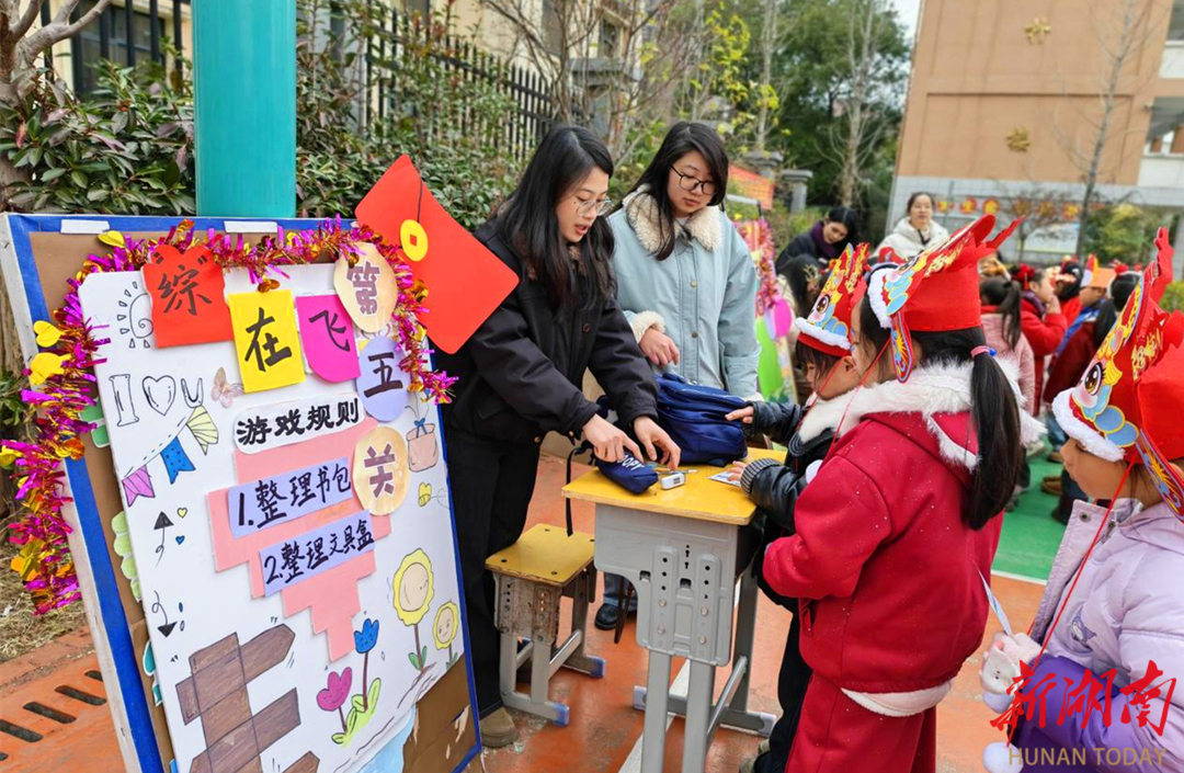 在“骏马识字词、慧马背诗词”关卡中,学生们化身“识字小骏马”,认读字词、背诵古诗,口齿伶俐的表达尽显语文积累;在“数字骏马”数学关卡中,学生们快速口算、巧手拼搭,在动手动脑中展现数学思维;在“小马冲冲冲”运动关卡中,学生们绕桩运年货、听令摆造型,在奔跑与协作中锻炼体能,感受运动乐趣;最有趣的是在“音你而来”关卡中,学生们用歌声、律动奏响新年乐章;在“综在飞”关卡中,学生们整理书包、归置文具,一个个“生活小能手”动作麻利、有条不紊。