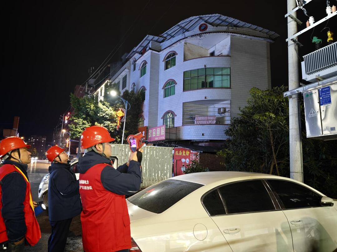 晚间负荷高峰时段,空调、电暖器等采暖设备集中运转,线路设备易出现过载发热、绝缘老化等问题。针对这一特点,新田公司将共产党员服务队划分为城区、村镇两大攻坚组,采用“定点测温+动态巡线”相结合的方式开展工作。城区组重点对老旧小区、商业街区的配电变压器、电缆分支箱等设备进行地毯式排查,用红外测温仪对设备接头、刀闸等关键部位进行精准测温,实时记录数据并与负荷曲线比对分析;村镇组则针对农村电网线路分散、部分路段照明不足的情况,队员们手持应急照明灯,深一脚浅一脚地穿梭在田间地头,重点排查农排线路、台区出线等易被忽视的部位,及时清理线路旁的枯枝、塑料薄膜等安全隐患。