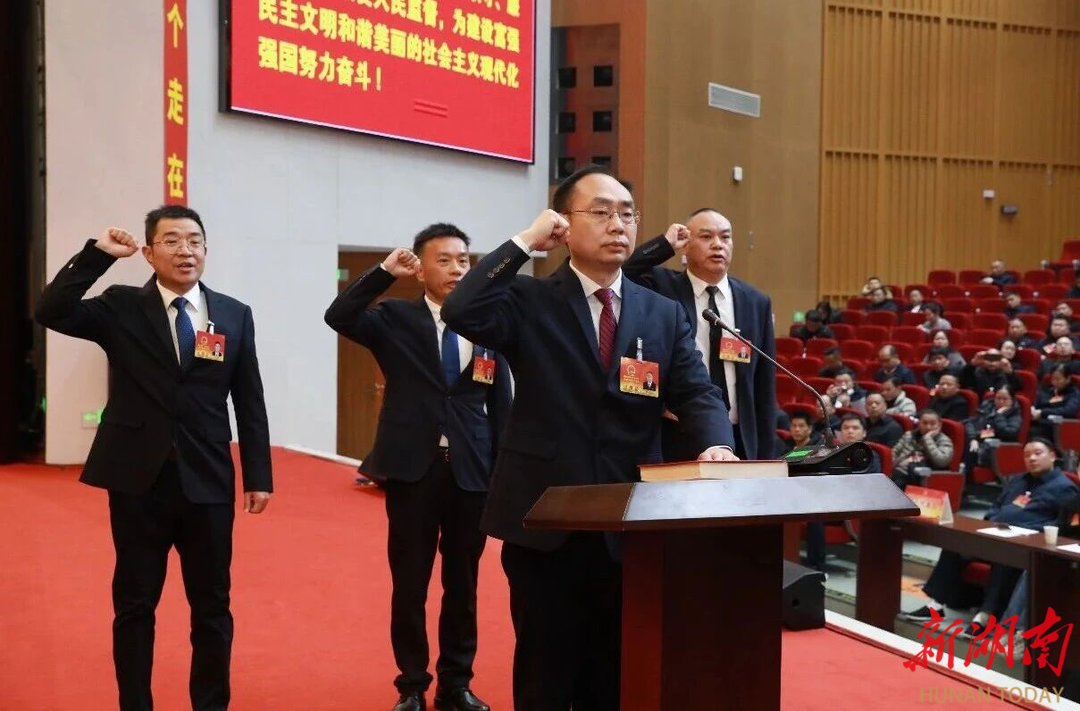 新当选人员在与会代表的见证下,向宪法宣誓。