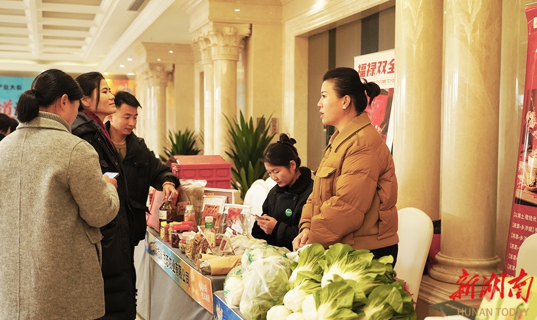 发布会现场,湘潭本土20余家农业企业集中展示了农特产品。湖南墨尾豚农业发展有限公司、湖南聚宝金昊生物科技有限公司、湘潭市雨湖区农业协会等企业带来了沙子岭猪肉、大米、湘潭矮脚白等特色农产品。