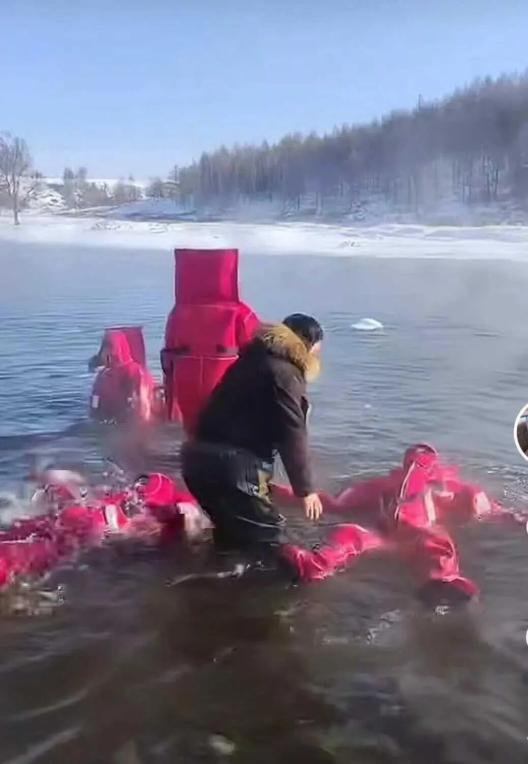 据极目新闻此前报道,网友们发布的视频和图片显示了多种场景:有挖掘机在河道里施工,有游客穿着漂流服漂浮在水面上,有人坐在皮划艇里用器械敲碎结冰的河面。