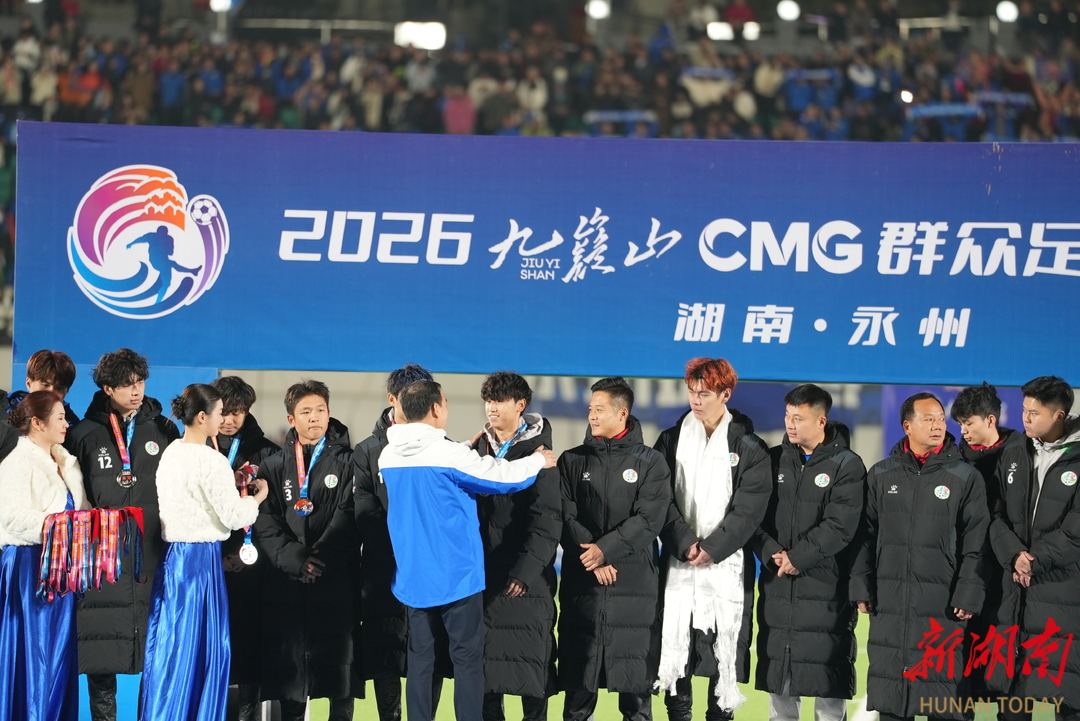 1月24日晚,永州市体育场,永州队获得2026年九嶷山CMG群众足球邀请赛亚军。湖南日报全媒体记者 童臻熙 郭利 摄