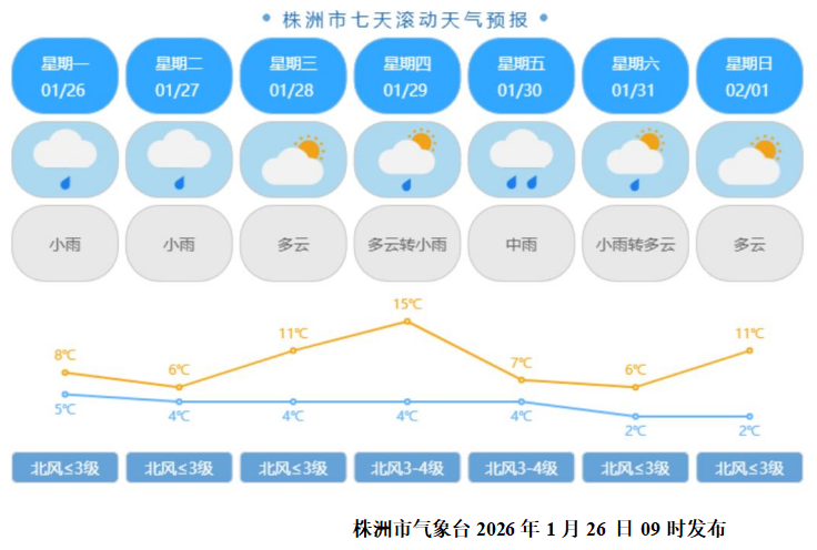 湖南日报·新湖南客户端1月26日讯(记者 龙子怡 通讯员 杨燿华)你是否觉得,刚过去的这个周末,阳光与微风配合得恰到好处,让人几乎要忘记上周那场持续数日的低温雨雪?但冬天的故事,似乎还没打算就此收尾。新的一周,株洲的天气将再次转入“多变”的频道,阳光暂时退场,雨水和降温将接连来拜访两次。