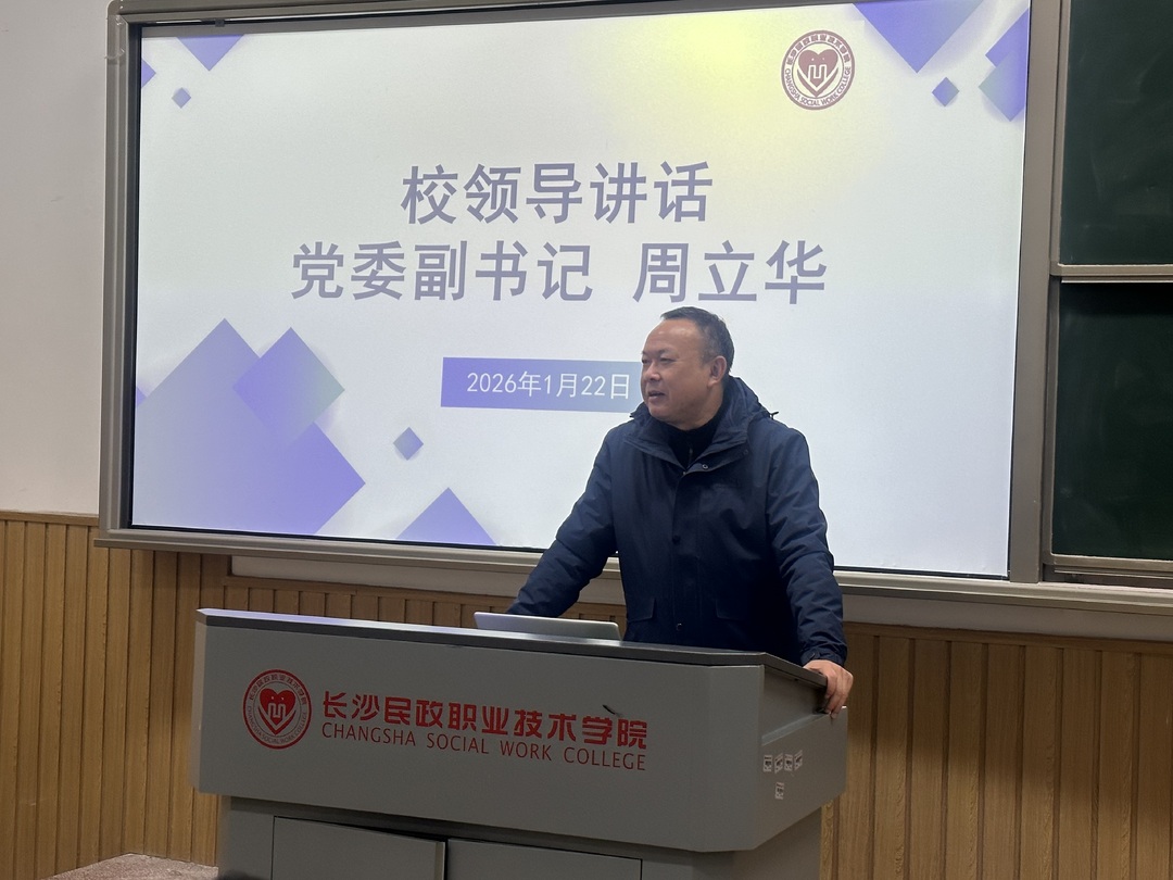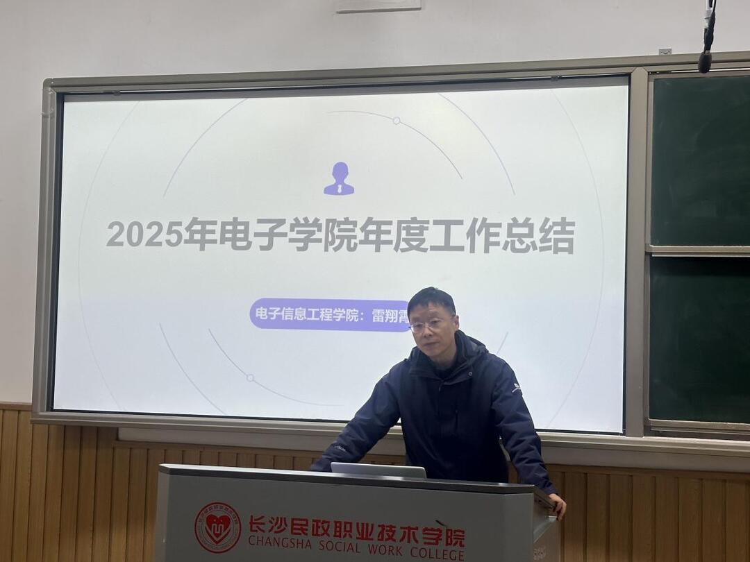 近日,长沙民政职院电子信息工程学院召开全院教职工大会,全面总结2025年度工作,部署下一步发展任务。长沙民政职院党委副书记周立华出席会议并作指导讲话,电子信息工程学院全体教职工参加会议,会议由学院综合办主任廖卓彦主持。