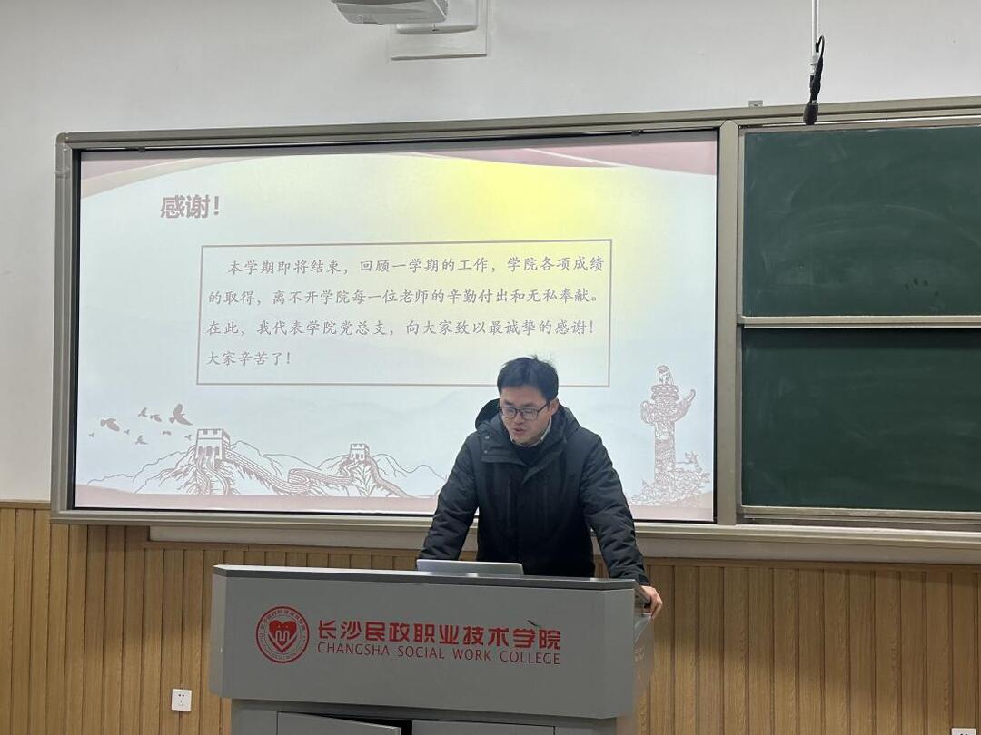 党总支书记吴文平从党建工作、思政引领、师德师风、安全稳定等方面全面总结了学院2025年的党建工作和思想教育工作。他表示,学院坚持以党建引领事业发展,推动党建与业务“五协同”,在标杆院系建设、党员发展、廉政教育等方面取得显著成效。吴文平还就下一步党建工作提出了“对标争先”“四个一”行动等具体举措,号召全体教职工严守纪律、廉洁从教、关爱学生。
